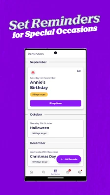 Älä enää koskaan unohda tärkeää päivää! Integroitujen muistutustoimintojemme ansiosta voit lisätä kalenteriisi kaikki tärkeät merkkipäivät ja varmistaa, että saat ajoissa ilmoituksen valitsemastasi muistamisesta. Kätevän tilinhallinnan kautta voit vaivattomasti seurata tilauksiasi, hallita toimitusosoitteita ja tarkastella aiempia ostoksiasi. Voit myös hyödyntää ennakkomaksutoimintoa, johon lisäämme kiitoksena pienen lisäbonuksen. Tekemällä ilahduttamisesta helppoa ja vaivatonta, varmistat, että kaikki läheisesi tuntevat olonsa muistetuksi ja rakastetuksi.