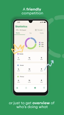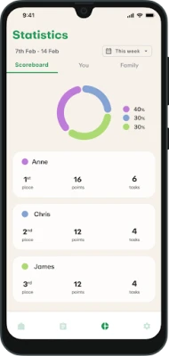 HEIMA kannustaa saavuttamaan tavoitteita yhdessä koko perheen voimin palkitsevan pisteytysjärjestelmän avulla. Jokainen suoritettu askare tuo pisteitä, ja voit seurata perheesi viikoittaista tulostaulua ja edistymistä ajan myötä. Aseta viikoittaisia tavoitteita ja näe perheesi tilastot kasvavan, luoden hauskaa kilpailuhenkeä ja motivoiden lapsia ja nuoria ansaitsemaan esimerkiksi viikkorahaa, ruutuaikaa tai muita toivottuja palkintoja. HEIMAa suositellaan myös neurokirjon perheille sen selkeän ja visuaalisen rakenteen ansiosta, joka tukee tehokkaasti kaikkien kotitöiden hoitamisessa ja arjen haasteiden lievittämisessä. Maksullinen HEIMA Premium tarjoaa perheellesi rajattoman kokemuksen, sisältäen rajattomat tehtävät, listat ja tilastot yhden perhehinnan turvin, ilman mainoksia.