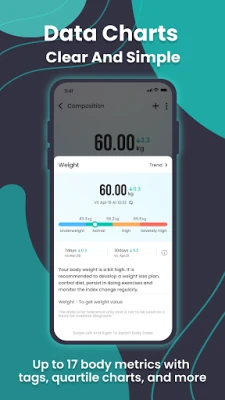 Sovelluksen ytimessä on edistyksellinen Bluetooth-yhteys, joka mahdollistaa vaa'an mittaustulosten vaivattoman siirron mobiililaitteeseesi. Tämä automaattinen tiedonsiirto varmistaa, että kaikki henkilökohtaiset terveyslukemasi tallennetaan välittömästi ja luotettavasti. Järjestelmä ei ainoastaan tallenna tietoja, vaan se myös arvioi automaattisesti lukemiesi standardinmukaisuutta, tarjoten sinulle selkeän kuvan edistymisestäsi ja auttaen tunnistamaan mahdolliset muutostarpeet. Visualisoi matkasi yksityiskohtaisten ja helppolukuisten kaavioiden avulla, jotka luodaan automaattisesti jokaisen mittauksen jälkeen, antaen kokonaisvaltaisen kuvan kehityksestäsi ajan mittaan.
