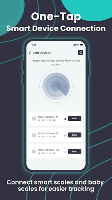 Nykyaikainen elämäntapa vaatii tehokkaita työkaluja terveyden ja hyvinvoinnin ylläpitoon. Tämä innovatiivinen sovellus toimii henkilökohtaisena kumppaninasi, joka muuttaa tavan, jolla seuraat ja ymmärrät kehosi tietoja. Se tarjoaa saumattoman yhteyden yhteensopiviin elektronisiin vaakoihin, tuoden tärkeät mittaukset suoraan ulottuvillesi. Koe vaivaton terveysdatan hallinta, joka tukee matkaasi kohti terveempää elämää ja mahdollistaa henkilökohtaisten tietojen helpon seurannan milloin ja missä tahansa.