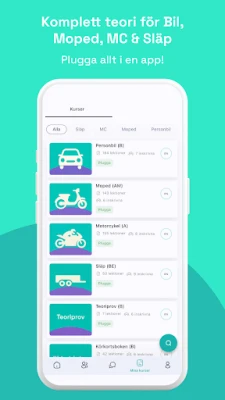 Körkortssidan mullistaa ajokortin opiskelun tarjoamalla kaiken tarvittavan yhdessä, intuitiivisessa sovelluksessa. Tavoittelitpa sitten henkilöauton (B), mopon (AM), moottoripyörän (A) tai perävaunun (BE) ajokorttia, löydät kattavan tuen matkallesi. Henkilöautokortin materiaali on saatavilla ruotsiksi, englanniksi ja arabiaksi, jotta opiskelu on mahdollisimman saavutettavaa. Sukella yli 7 000 teorian kysymyksen laajaan pankkiin, joista jokaisessa on selitykset syventämään ymmärrystäsi. Harjoittele todentuntuisilla kokeilla, jotka on mallinnettu Trafikverketin virallisen kokeen mukaan. Hyödynnä ajokorttikirjaa, äänikirjaa ja videokirjaa monipuoliseen oppimiseen sekä etene selkeän, vaiheittaisen opaskirjan avulla. Kaikki edistymisesi synkronoidaan saumattomasti sovelluksen ja tietokoneversion välillä, ja ansaitset pisteitä, merkkejä ja diplomeja saavutuksistasi.
