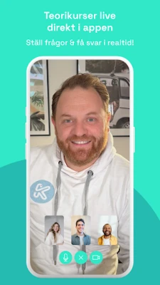 Lisää syvyyttä opiskeluun tuovat Körkortssidanin ainutlaatuiset reaaliaikaiset tukipalvelut. Osallistu live-teoriakursseille suoraan sovelluksessa, missä voit esittää kysymyksiä kokeneille liikenneopettajille ja saada välitöntä opastusta. Jos et pääse mukaan, kaikki live-istunnot tallennetaan, joten voit katsoa ne myöhemmin sinulle sopivana ajankohtana. Liity osaksi innostavaa ajokortinopiskelijoiden yhteisöä. Täällä voit jakaa kokemuksia, saada vinkkejä ja inspiraatiota sekä esittää kysymyksiä muille opiskelijoille, luoden vertaistuellisen verkoston koko matkan ajaksi.