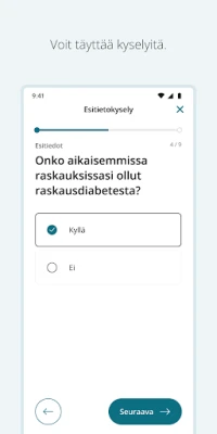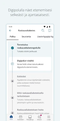 Omapolku avaa portin monipuolisiin terveyden- ja sosiaalihuollon polkuihin, edellyttäen voimassa olevaa asiakkuutta sosiaalihuollossa tai lähetettä/hoitosuhdetta terveydenhuollon yksikköön. Sovelluksen kautta saat räätälöityä tietoa ja ohjeita elävöitettynä tekstillä, kuvilla ja videoilla, jotka auttavat sinua ymmärtämään ja edistymään polullasi. Lisäksi löydät käytännönläheisiä kyselyitä, harjoituksia ja tehtäviä, jotka tukevat hyvinvointiasi aktiivisesti. Tarjoamme myös mahdollisuuden luottamukselliseen ja kiireettömään viestinvaihtoon sinua hoitavien tai palvelevien ammattilaisten kanssa, varmistaen jatkuvan tuen ja ohjauksen.