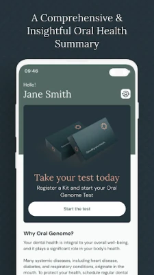 Oral Genomen käyttö on suunniteltu äärimmäisen yksinkertaiseksi. Kerää sylkinäyte kätevästi testikortillesi, minkä jälkeen Oral Genome -sovellus analysoi tulokset silmänräpäyksessä. Saat selkeää, personoitua palautetta, joka sisältää konkreettisia suosituksia ennaltaehkäisyyn, elämäntapoihin ja ravitsemukseen liittyen. Potilaana pääset syventämään ymmärrystäsi yleisten hammas- ja systeemisten terveyshuolien riskitekijöistä. Opit, miten suusi terveys heijastaa koko kehon hyvinvointia, ja saat heti käyttökelpoista opastusta päivittäisten tapojesi parantamiseen.