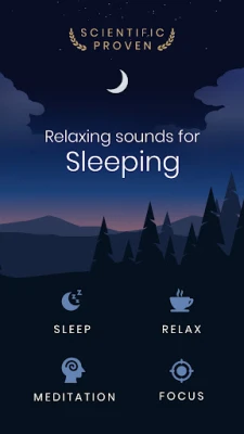 "Relaxing Sounds for Sleeping" auttaa sinua rentoutumaan ja nukahtamaan helposti. Unohda stressi ja unettomuus kattavan luontoäänien ja rauhoittavien melodioiden avulla. Löydä yli 70 korkealaatuista ääntä syvään uneen ja virkeään aamuun. Ihanteellinen rentoutumiseen ja meditaatioon.