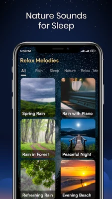 Kaipaatko rauhaa pitkän, kuormittavan päivän jälkeen? Anna Rain Sleep Sounds & Meditation Music -sovelluksen johdattaa sinut stressistä ja unettomuudesta kohti syvää lepoa ja mielen tyyneyttä. Olipa kyseessä sitten unettomuuden torjunta, arjen stressin lievitys tai pelkkä kaipuu rauhalliseen hetkeen, tämä Relax Melodies Sleeping App tarjoaa kattavan ratkaisun. Sen laaja kokoelma luonnon ääniä ja rauhoittavia melodioita luo ihanteelliset olosuhteet rentoutumiselle ja helppoon nukahtamiseen, auttaen sinua heräämään virkistyneenä joka aamu.