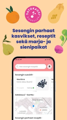 Satokausi®-sovellus on helppokäyttöinen opas sesongin parhaiden raaka-aineiden hyödyntämiseen. Se yhdistää Satokausikalenterin, herkulliset reseptit sekä Suomen parhaat sieni- ja marjapaikat, auttaen sinua löytämään luonnonantimia metsistä.