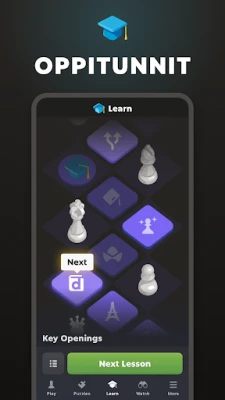 Kehitystäsi tukevat lukemattomat taktiikkatehtävät – yli 500 000 pulmaa odottaa ratkaisijaansa, ja niiden vaikeustaso mukautuu sinun edistymiseesi. Opi shakin salat suurmestarien johdolla tuhansien videoiden ja interaktiivisten oppituntien kautta, jotka on suunniteltu syventämään ymmärrystäsi. Jokainen oppitunti tarjoaa selkeitä ohjeita ja hyödyllisiä vinkkejä, auttaen sinua nousemaan seuraavalle tasolle. Harjoittele myös tekoälyä vastaan, jonka vahvuutta voit säätää juuri omaan taitoosi sopivaksi, ja analysoi pelejäsi oppiaksesi tehokkaasti virheistäsi.