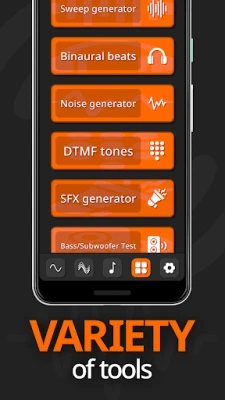 Sovelluksen ytimessä sykkii laaja valikoima generaattoreita, jotka on suunniteltu vastaamaan jokaiseen tarpeeseen. Luo tarkkoja yksittäisiä taajuuksia, yhdistele useita sävyjä saumattomasti tai viritä instrumenttisi nuottiesiasetusten avulla. Sukella syvemmälle SFX- ja lakaisugeneraattorien pariin tuottaaksesi uniikkeja äänitehosteita, tai hyödynnä Taajuusäänigeneraattori-sovelluksen bassotestiä subwooferisi suorituskyvyn tutkimiseen. Ainutlaatuiset DTMF- ja puhtaan äänen efektigeneraattorit laajentavat luovia mahdollisuuksiasi entisestään.