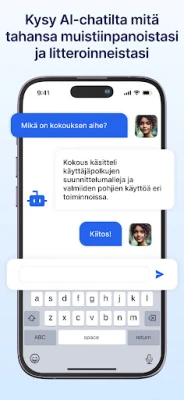 Transkriptorin ytimessä on monipuolinen tekoäly, joka ei ainoastaan litteroi, vaan myös älyllistää sisältöäsi. Sen tekoälyavustaja luo vaivatta tiivistelmiä pitkistä keskusteluista, laatii sähköpostiluonnoksia ja järjestää muistiinpanojasi. Ainutlaatuinen tekoälychat mahdollistaa vuorovaikutuksen transkriptioiden kanssa: voit esittää kysymyksiä, poimia keskeisiä kohtia ja saada välittömiä yhteenvetoja suoraan chat-ikkunasta. Lisäksi äänimuistioiden tekoälypohjainen litterointi varmistaa, että jokainen ajatus ja yksityiskohta tallentuu ja muuntuu luettavaksi tekstiksi virheettömällä tarkkuudella.